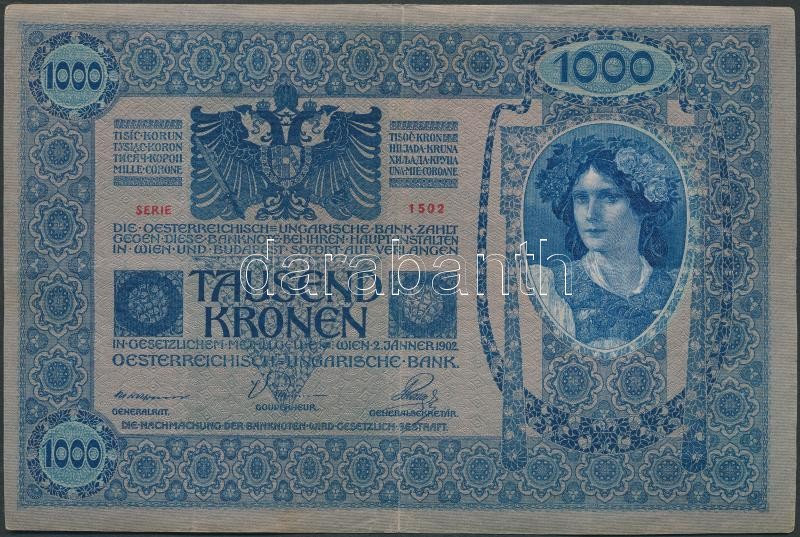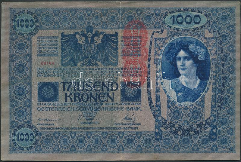 https://www.darabanth.com/en/158-Online-auction/158.0/Numismatics/Hungarian-Banknotes~600103/1902-1000K-fuggoleges-Deutschosterreich-felulnyomassal-TIII~II397056