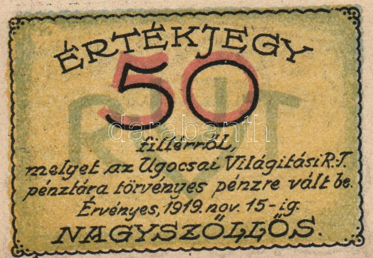 https://www.darabanth.com/en/158-Online-auction/158.0/Numismatics/Hungarian-and-foreign-emergency-notes-and-coins-tokens~600102/Nagyszollos-1919-Ugocsai-Vilagitasi-Rt-50f-1K-2K-3K-5K-TI~II500789