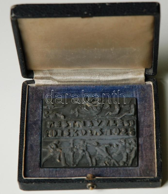https://www.darabanth.com/en/158-Online-auction/158.0/Numismatics/Hungarian-commemorative-medals-plaques-badges~600115/1925-Testnevelesi-Foiskola-fem-plakett-adomanyozoi-disztokban-Szign-JI-69x59mm-T2~II499108