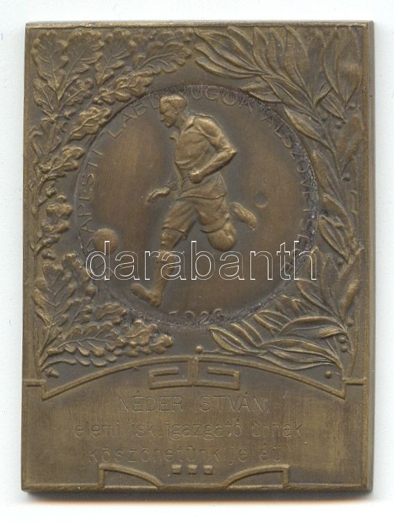 https://www.darabanth.com/en/158-Online-auction/158.0/Numismatics/Hungarian-commemorative-medals-plaques-badges~600115/1926-Budapesti-Labdarugo-Alszovetsege-Neder-Istvan-elemi-isk-igazgato-urnak-koszonetC3~II499094