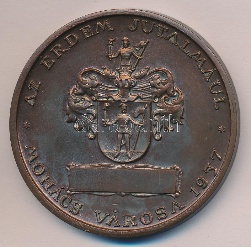 1937. "A Mohácsi csata 250. évfordulója emlékére / Az érdem jutalmául Mohács városa" bronzolt fém emlékérem (60mm) T:2