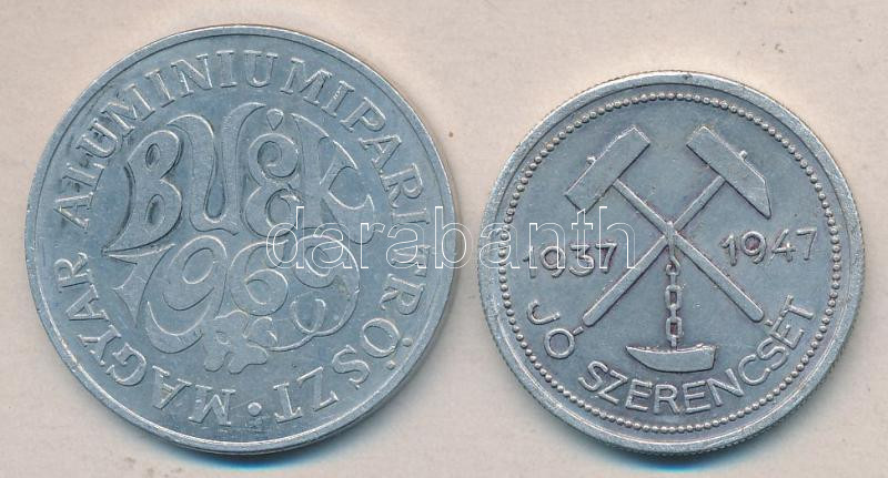 1947. "Magyar-Szovjet-Bauxit-Aluminium Rt." Alu emlékérem (36mm) + 1969. "Magyar Aluminiumipar Tröszt" Alu emlékérem (39mm) T:2