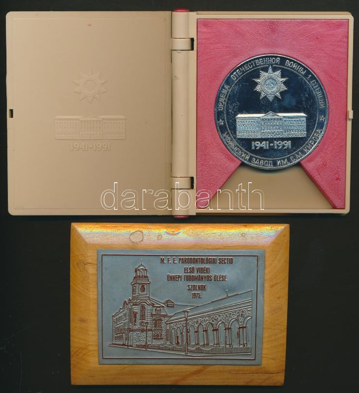 https://www.darabanth.com/en/158-Online-auction/158.0/Numismatics/Hungarian-commemorative-medals-plaques-badges~600115/1975-MFE-parodontologiai-sectio-plakett-plus-szovjet-plakett-muanyag-tokban~II497898