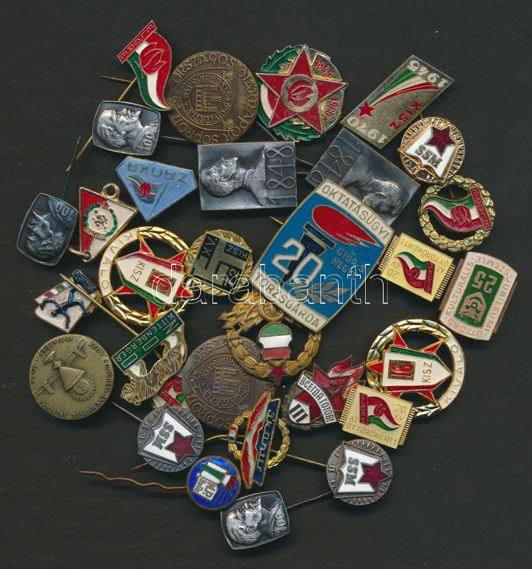 https://www.darabanth.com/en/158-Online-auction/158.0/Numismatics/Hungarian-commemorative-medals-plaques-badges~600115/31db-jelveny-kituzo-foleg-a-szocializmus-idejebol-Tvegyes~II501413