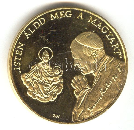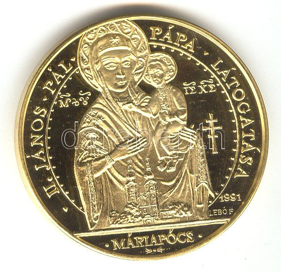 Bognár György (1944-) / Lebó Ferenc (1960-) 1991. "II.János Pál pápa látogatása - Máriapócs" aranyozott emlékérem (d=43mm) T:PP