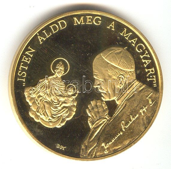 Bognár György (1944-) / Lebó Ferenc (1960-) 1991. "II.János Pál pápa látogatása - Szombathely" aranyozott emlékérem (d=43mm) T:PP