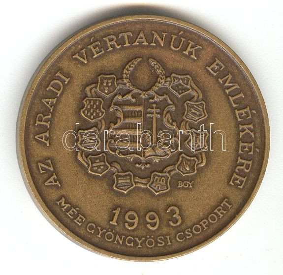 Bognár György (1944-) / Szabó Tamás (1952-) 1993. "MÉE Gyöngyösi Csoport - Aradi Vértanúk / Aulich Lajos" Br emlékérem (d=42mm) T:1-