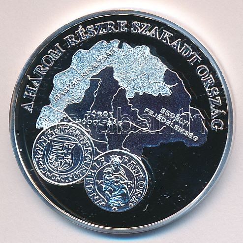 DN "A magyar pénz krónikája-A három részre szakadt ország" Ag(999) emlékérem, (20g/38,61mm) T:PP Tanúsítvánnyal.Csak 2004db!