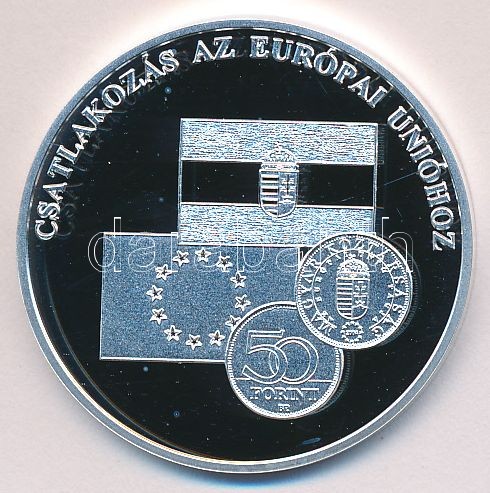 DN "A magyar pénz krónikája-Csatlakozás az Európai Unióhoz" Ag(999) emlékérem, (20g/38,61mm) T:PP Tanúsítvánnyal.Csak 2004db!