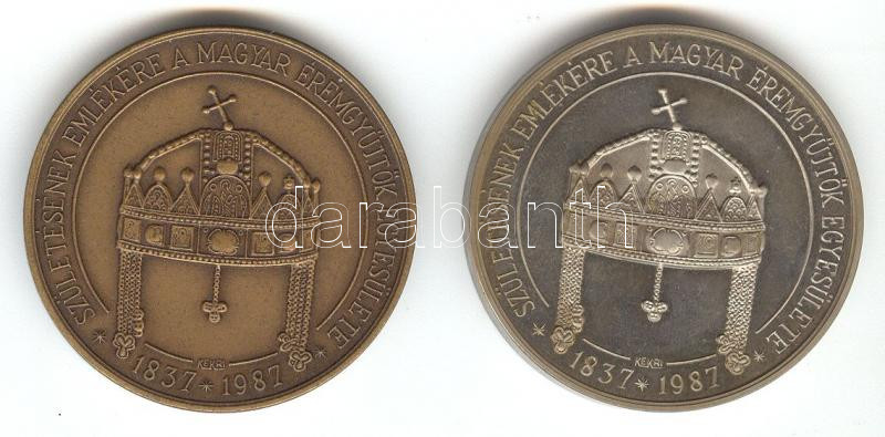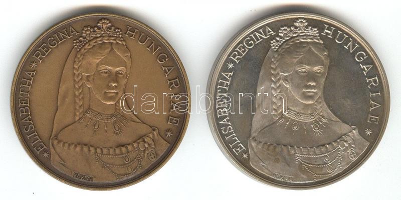 Kelemen Kristóf (1922-) 1987. "MÉE / Erzsébet királyné születésének emlékére" Ni + Br emlékérem pár (d=42mm) T:PP,1