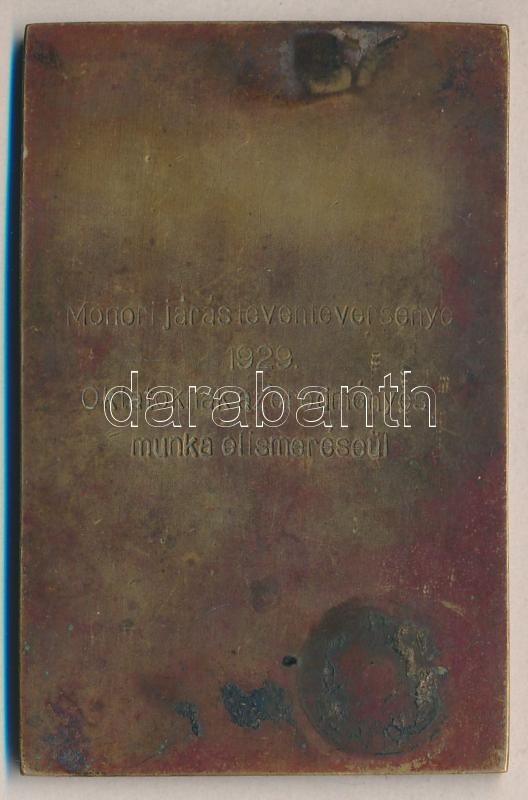 Szitányi Gábor (1884-1970) 1927. Irredenta Br plakett az 1929. Monori járás leventeversenyére adományozva (80x94mm) T:2
