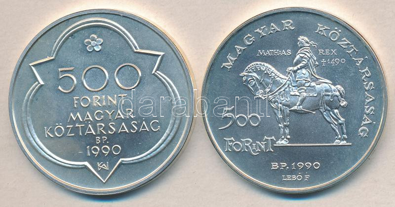 https://www.darabanth.com/en/158-Online-auction/158.0/Numismatics/Hungarian-metal-and-silver-coins~600104/1990-500Ft-Ag-plus-500Ft-Ag-Matyas-kiraly-par-TBU~II501295