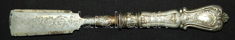 XX. század eleji antik ezüst nyelű kaviárkés maratott lapát résszel, d...