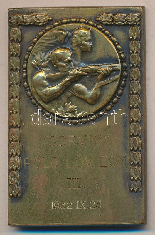 1932.IX.25. "Corvin Polg. Löv. Egy." bronz plakett eredeti adományozói...