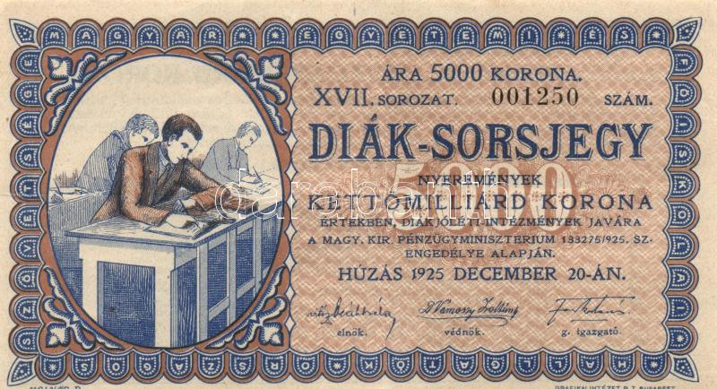 1925. "Diák sorsjegy" XVII. sorozat 5000K T:II