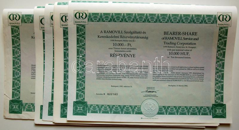 https://www.darabanth.com/en/158-Online-auction/158.0/Numismatics/Shares-Securities-and-Tickets~600101/1992-Budapest-A-Ramovill-Szolgaltato-es-Kereskedelmi-Reszvenytarsasag-reszvenye-10000F~II502245