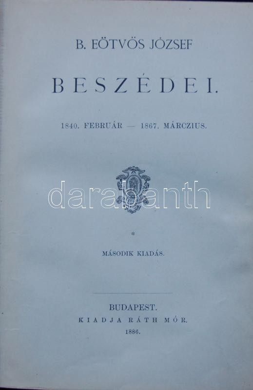 Eötvös József, báró beszédei. 1. kötet. 1840. február -1867. márcziu... https://www.darabanth.com/en/158-Online-auction/158.0/Other-collectibles/Books-History~192/Eotvos-Jozsef-baro-beszedei-1-kotet-1840-februar--1867-marczius-Bp-1886-Rath-M~II502652