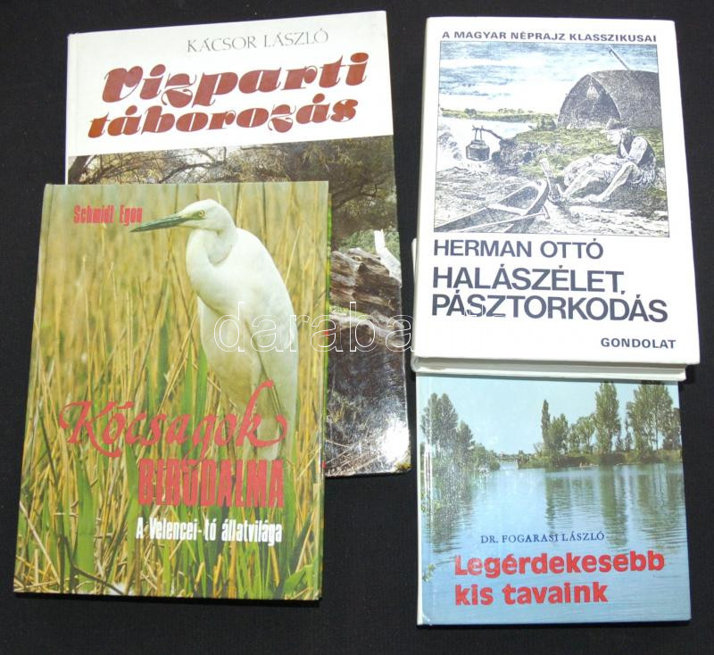 Description: 1978-1981 4 db Horgászoknak és természetjáróknak szóló könyv: A velencei tó világa,Legérdekesebb kis tavaink, Halászélet , pásztorkodás, Vízparti táborozás.