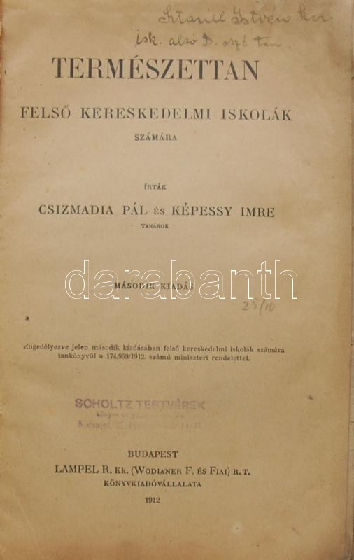 https://www.darabanth.com/en/158-Online-auction/158.0/Other-collectibles/Books-Natural-sciences~193/Csizmadia-Kepessy-Termeszettan-Felso-kereskedelmi-iskolak-szamara-Lampel-1912-Kisse-vise~II501420