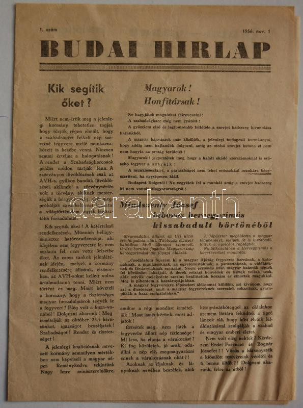 https://www.darabanth.com/en/158-Online-auction/158.0/Other-collectibles/Historical-documents-manuscripts~177/1956-november-1-Budai-Hirlap-I-evf-1-szam-Benne-a-forradalom-hireivel~II498358
