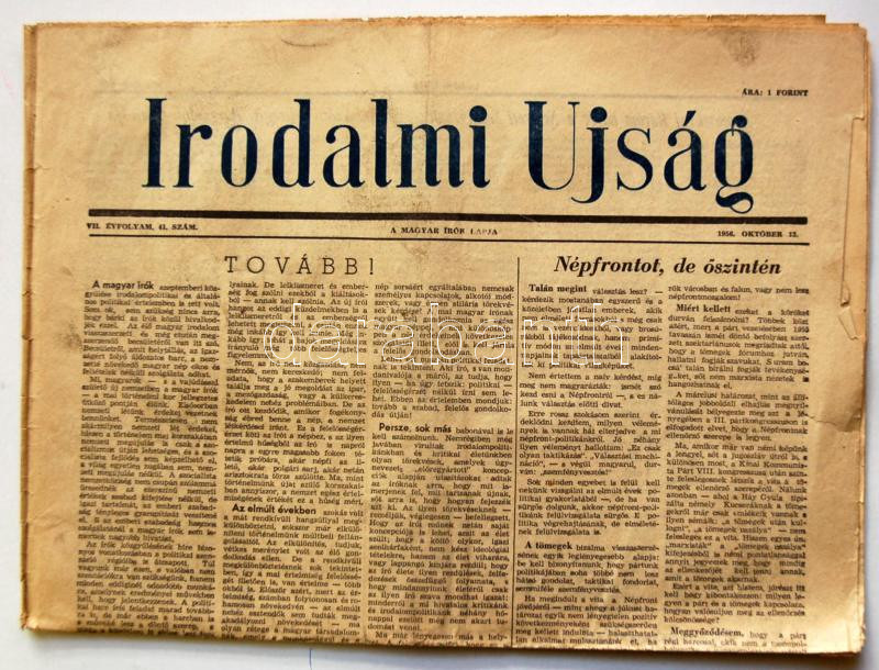 1956. október 13. Irodalmi Újság. Magyar Írók Lapja VIII. évf. 41.szám . Benne a forradalom híreivel