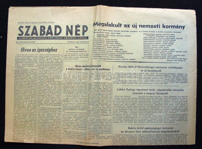 1956. október 28. Világ Proletárjai Egyesüljetek! Szabad Nép. XIV. év...