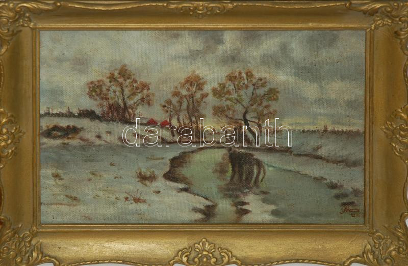 Ismeretlen jelzéssel: Téli táj Olaj, farost 40x30 cm Keretben