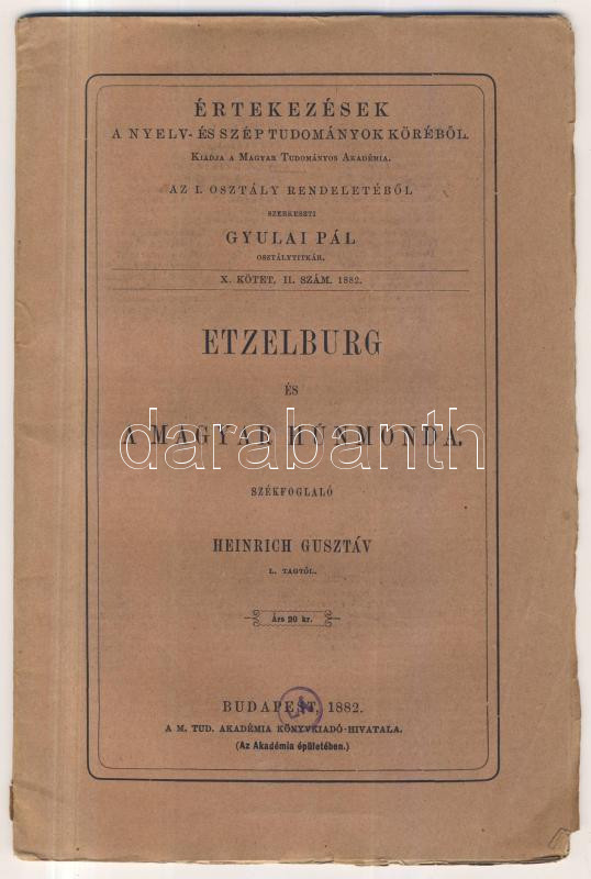 https://www.darabanth.com/en/159-Online-auction/159.0/Other-collectibles/Books-History~1200027/Heinrich-Gusztav-Etzelburg-es-a-magyar-hunmonda-szekfoglalo-Ertekezesek-a-nyelv-es-sze~II509485