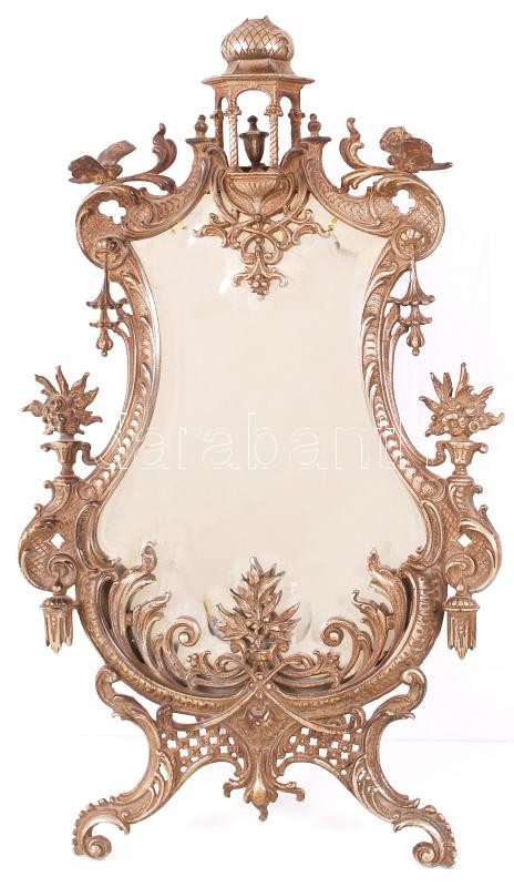 Asztali metszett tükör, gazdagon díszített, öntöttvas, m:54 cm, sz:31 ...