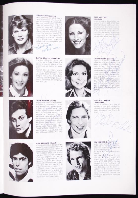 Description: 1983 A West Side Story franciaországi előadásának műsorfüzete a fellépő amerikai színészek aláírásaival. Összesen 33 aláírással. /