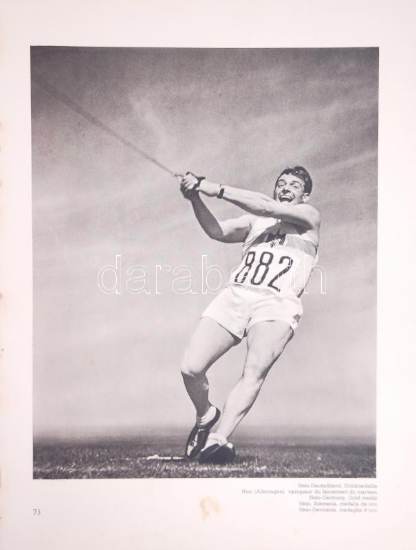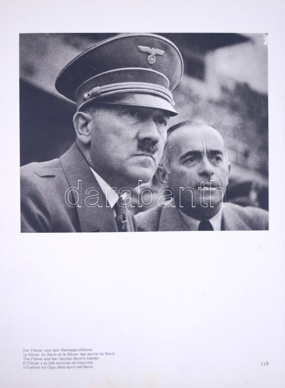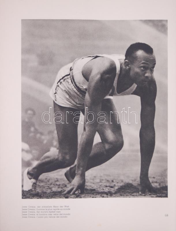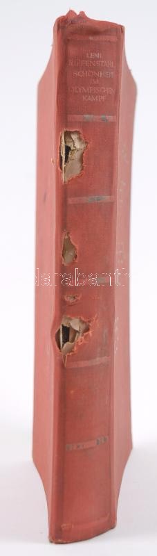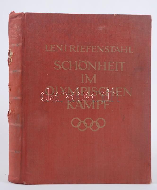 Description: Leni Riefenstahl: Schönheit im Olimpischen kampf. Mit Zahlreichen Aufnahmen von den Olimpischen Spielen 1936. Berlin, 1937. Deutscher Verlag. 280+(4) p. Szinte teljes egészében Riefenstahl fekete-fehér fotói. Kiadói, aranyozott egészvászon kötésben (gerién kisebb hibákkal) /