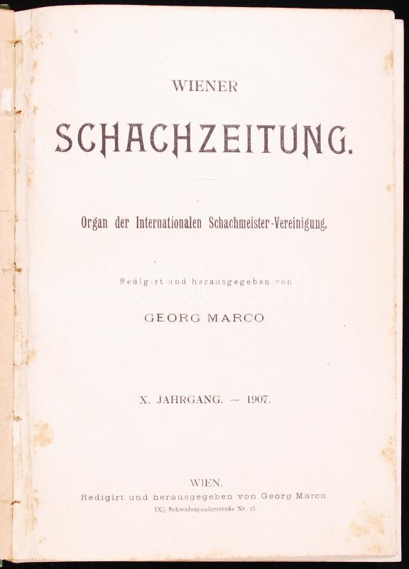 Description: Wiener Schachzeitung. Organ der Internationalen Schachmeister-Vereinigung. Hrsg. v. Georg Marco. X. Jahrgang - 1907. Wien, Georg Marco. Félvászon kötésben, illusztrált /