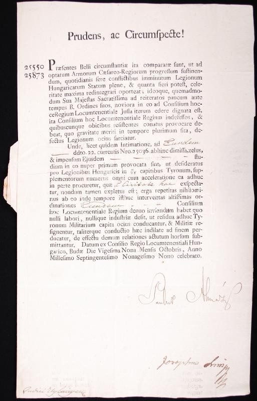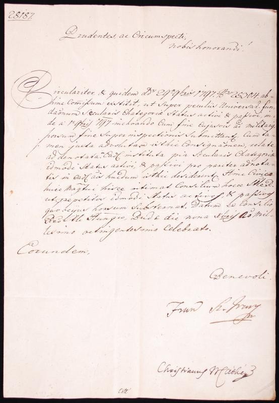 cca 1700-1830 20 letters of the Governing Council, and the Royal Chancery with autograph signatures of important persons. In Latin, German and Hungarian. For researchers as well.