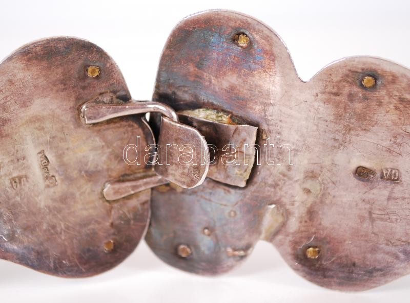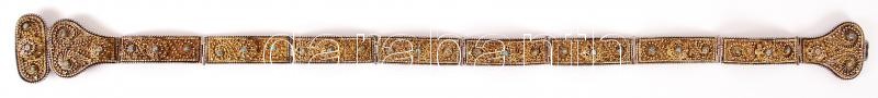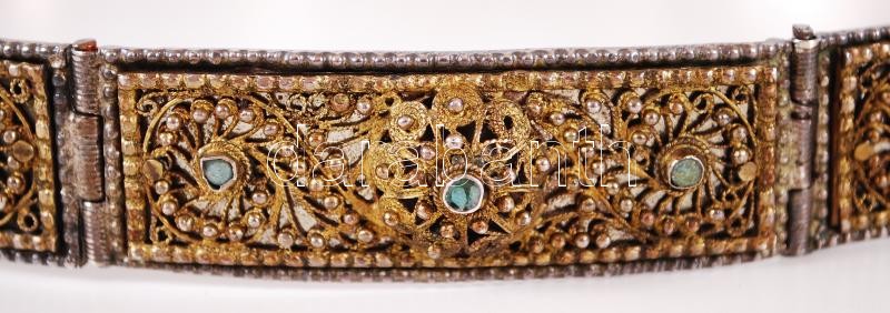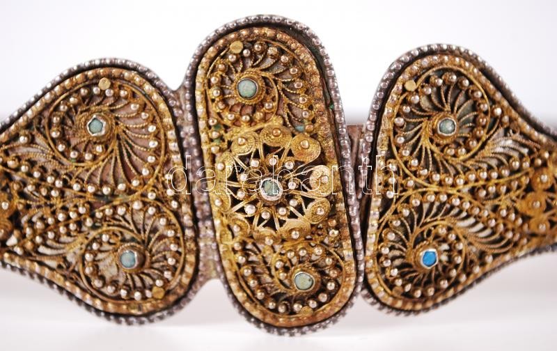 Description: XIX. század: Orosz (kozák) ezüst (Ag) öv aranyozott ezüst filigrán veretekkel, türkiz berakással, 84 zolotniki (875/1000) tisztaságjelzéssel és "CA" mesterjeggyel ellátva /