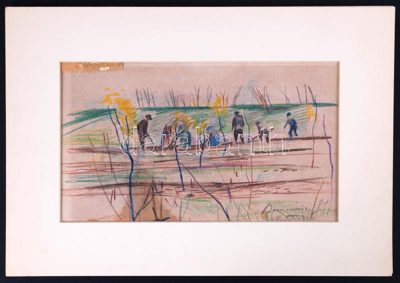 Bornemissza Géza (1884-1966): Kapálók a földeken. Vegyes technika, kar...