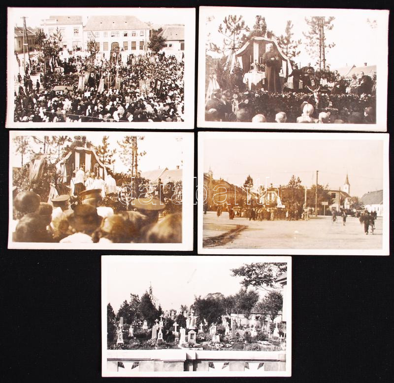 cca 1930 Egyházi ünnepség Magyarországon, 5db fotólap