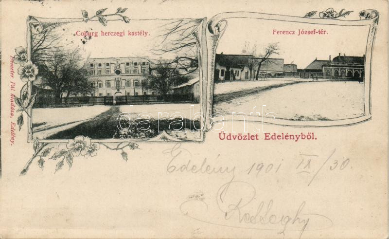 https://www.darabanth.com/en/16-Major-auction/16.1/Hungarian-postcards/Hungary~4881/Edeleny-Coburg-kastely-Ferenc-Jozsef-ter-floral~II695833