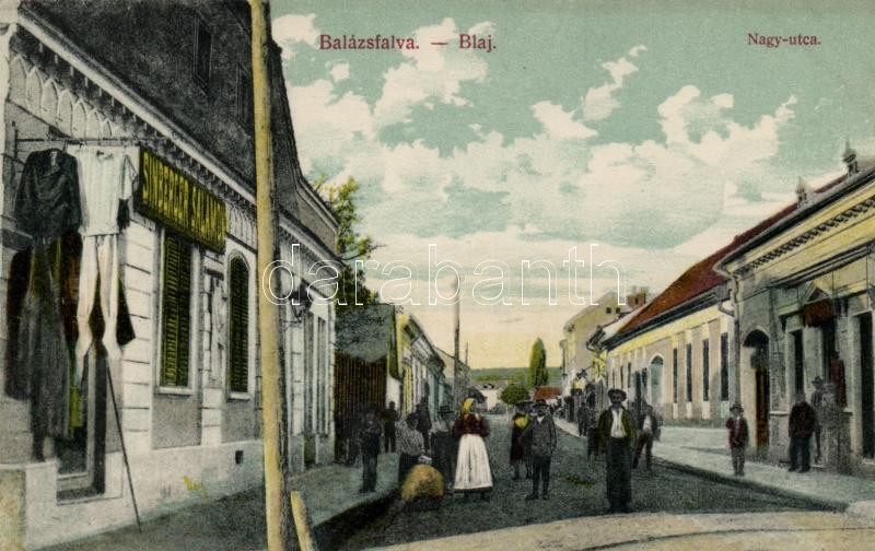 https://www.darabanth.com/en/16-Major-auction/16.1/Hungarian-postcards/Transylvania~4882/Balazsfalva-Nagy-utca-street-the-shop-of-Salamon-Sinberger~II698485