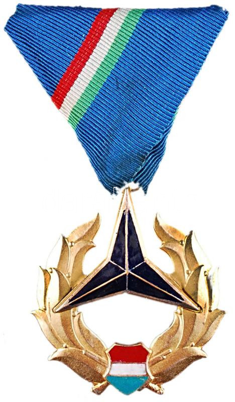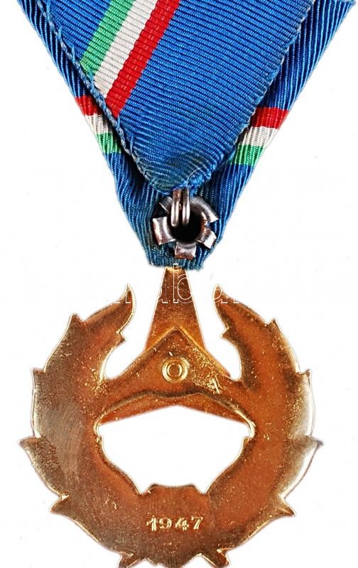 Description: 1947. "Közbiztonsági Arany Szolgálati Jel" kitüntetés szalagsávval, hátlapján domború számmal az "1947"-es alapítási év és a Magyar Állami Pénzverő háromszögletű verdejele látható. Eredeti adományozói dísztokban! T:1- Csak 16db adományozás! RRR!