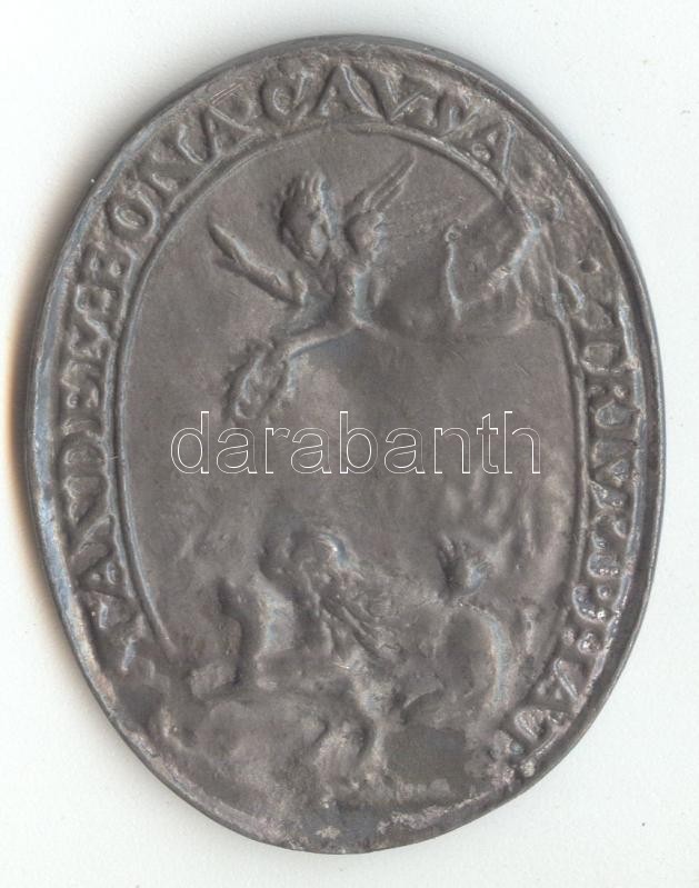Erdély ~1630. Brandenburgi Katalin ovális ón emlékérem ".CATH.D.G.N.M.B.S.R.I.ET.TRAN.PRIN./.TANDEM.BONA.CAVSA.TRIVMPHAT." (42mm/33mm) T:3