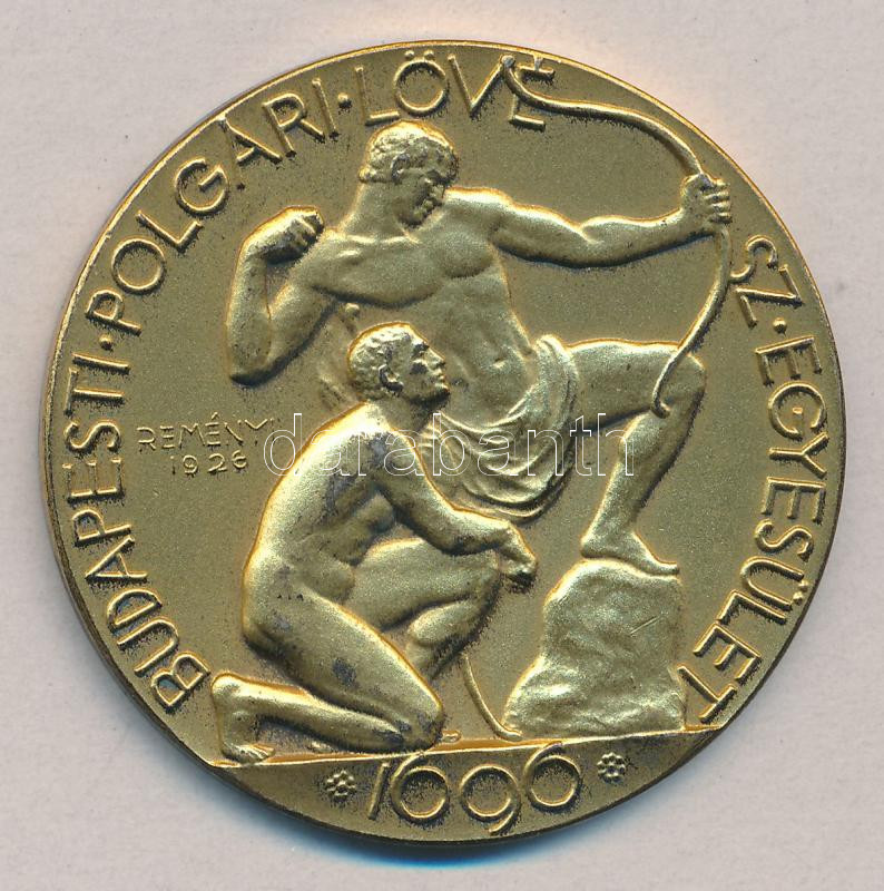 Reményi József (1887-1977) 1926. "Budapesti Polgári Lövész Egyesület aranyozott fém emlékérem (45mm) T:2