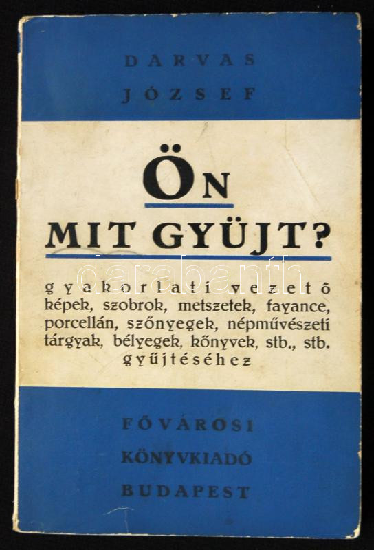 Darvas József: Ön mit gyűjt? Gyakorlati vezető képek, szobrok, metszetek etc. gyűjtéséhez. Bp, é.n., Fővárosi Könyvkiadó. Jó állapotban