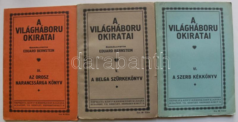 A világháború okiratai, összeáll. Eduard Bernstein. IV-VI. köt. (az or... https://www.darabanth.com/en/160-Online-auction/160.0/Other-collectibles/Books-History~2000029/A-vilaghaboru-okiratai-osszeall-Eduard-Bernstein-IV-VI-kot-az-orosz-belga-es-szerb-ko~II512214