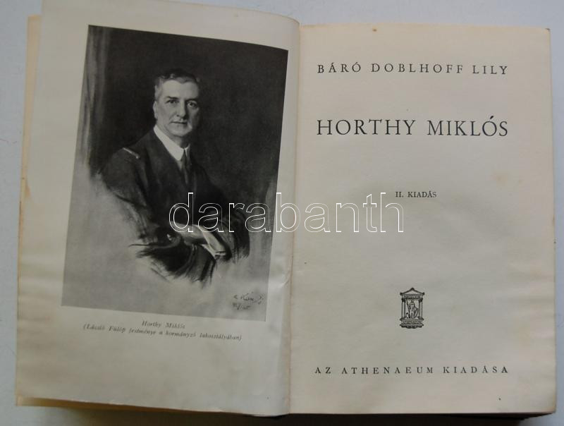 https://www.darabanth.com/en/160-Online-auction/160.0/Other-collectibles/Books-History~2000029/Baro-Dolbhoff-Lily-Horthy-Miklos-II-kiad-Bp-en-Athenaeum-Kisse-megviselt-kiadoi-eges~II512190