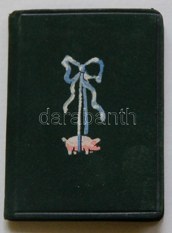 1922 Tárcanaptár igényes bőrkötésben újévi malaccal díszítve, aranyozott lapszélekkel