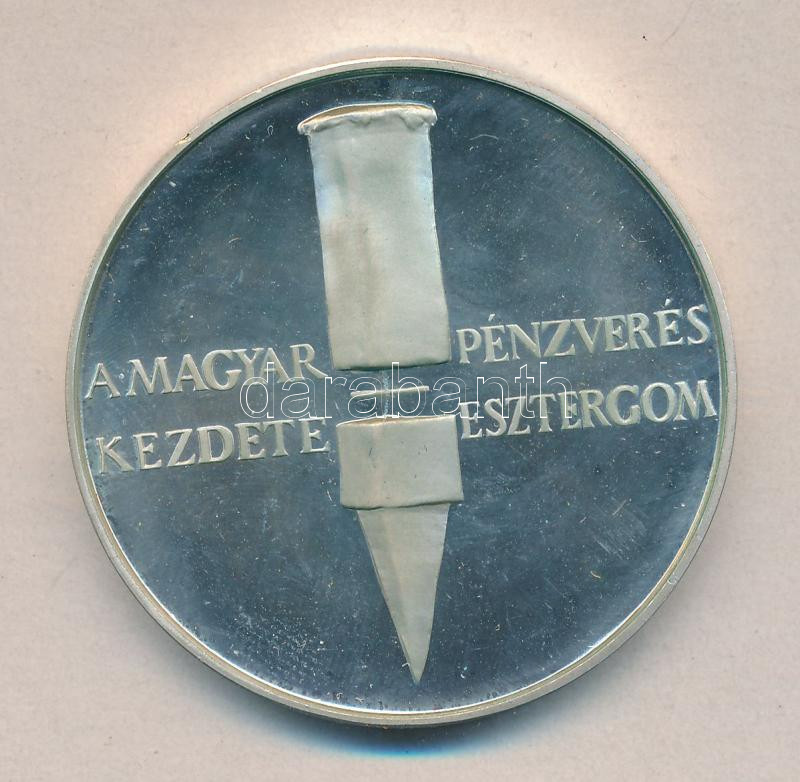 Lapis András (1942-) 1984. "A magyar pénzverés kezdete Esztergom" Ag(800) emlékérem (35g/42mm) T:PP/BU