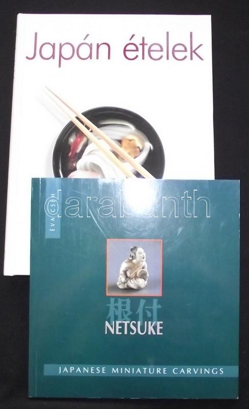 6db Japán témájú könyv és prospektus: Japán ételek, Szamuráj, A császárok sírjai, Japanese miniature carvings etc.