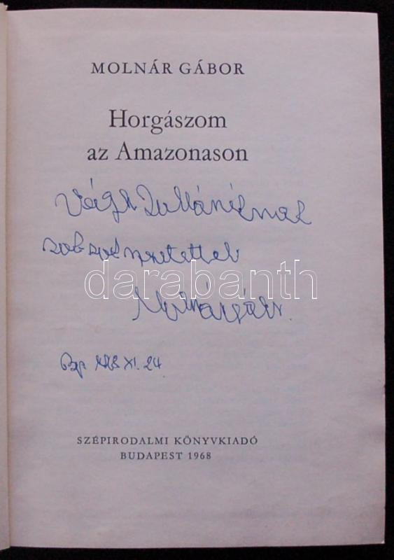 https://www.darabanth.com/en/161-Online-auction/161.0/Other-collectibles/Books-Travelling-cities~500159/Molnar-Gabor-Horgaszom-az-Amazonason-Bp-1968-Szepirodalmi-kiado-Dedikalt~II515168