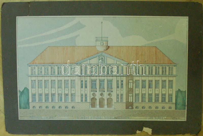 1926 Szántó Imre: Vidéki főreáliskola terve. akvarell, papír, 35x60 cm