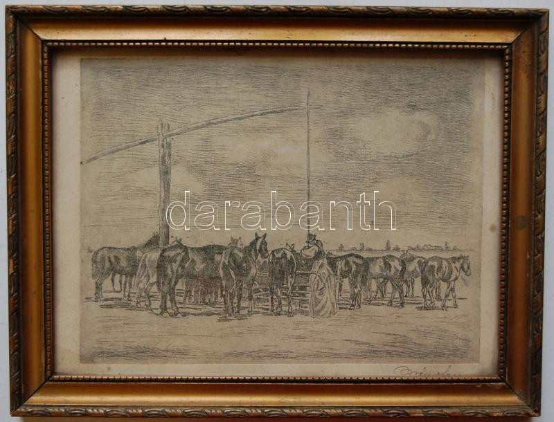 Azonosítatlan jelzéssel: Itatás. rézkarc, papír. jelzett, üvegezett keretben 30x25 cm